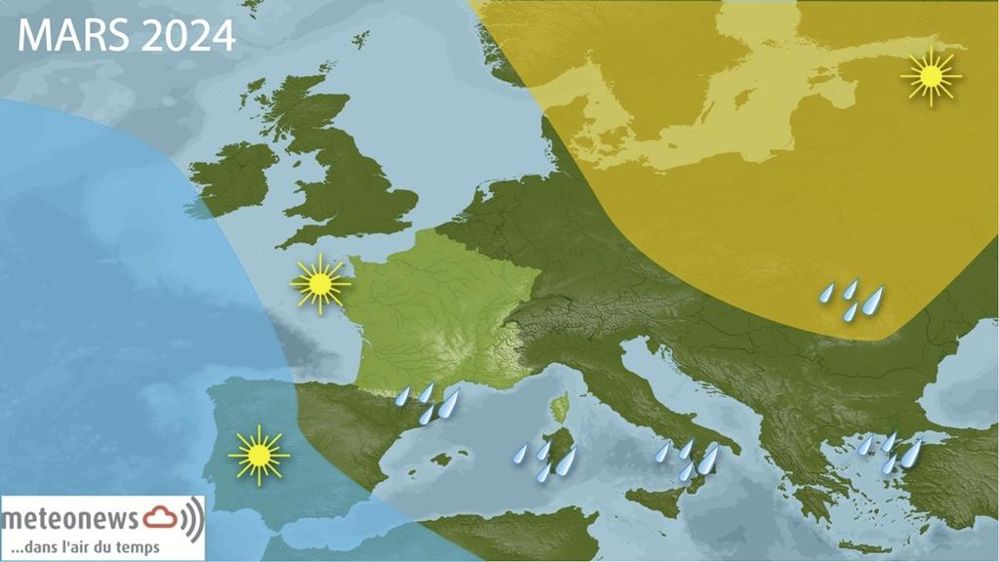 Pour mars 2024, on prévoit des températures globalement proches des normales saisonnières en France. Les dépressions au nord et l’anticyclone au sud-ouest, ainsi que la proximité de la Sicile, devraient entraîner des températures alternant entre le froid et la douceur.